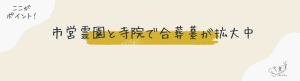 それに比べて合葬墓は広がりが早く、費用も低く、宗派を問わず利用できる点から支持を集めています。